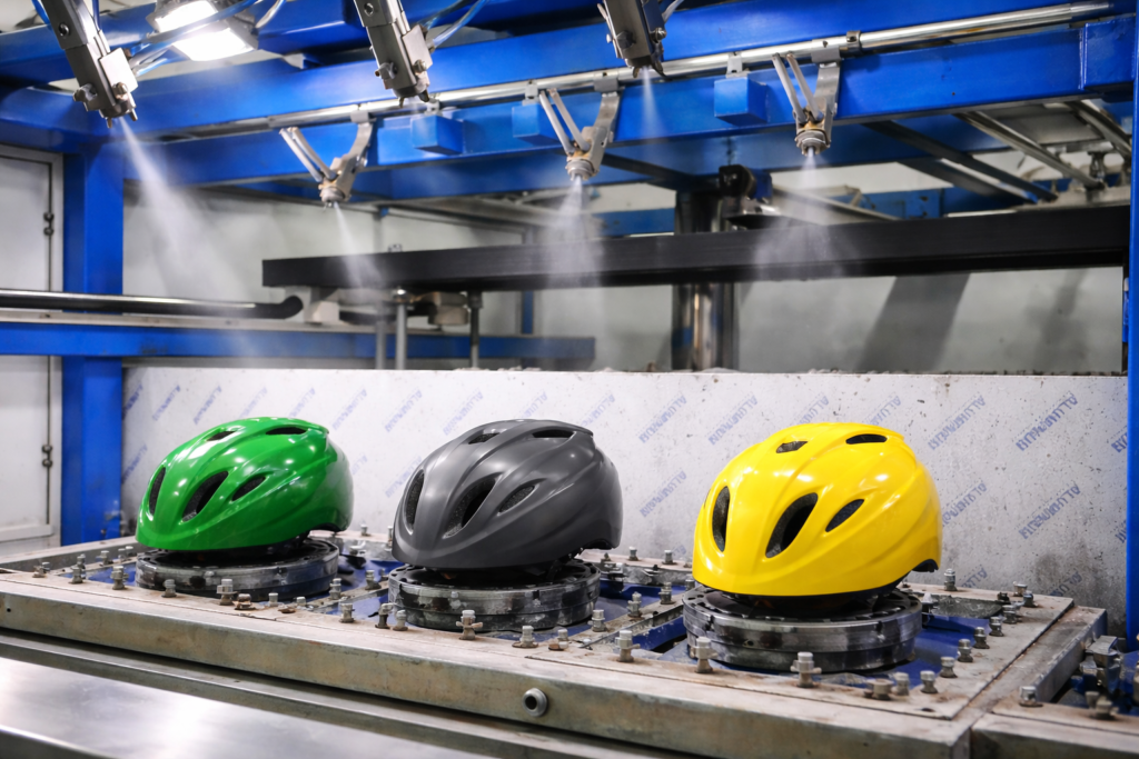 High-precision molds guarantee consistent helmet shape and structural integrity.