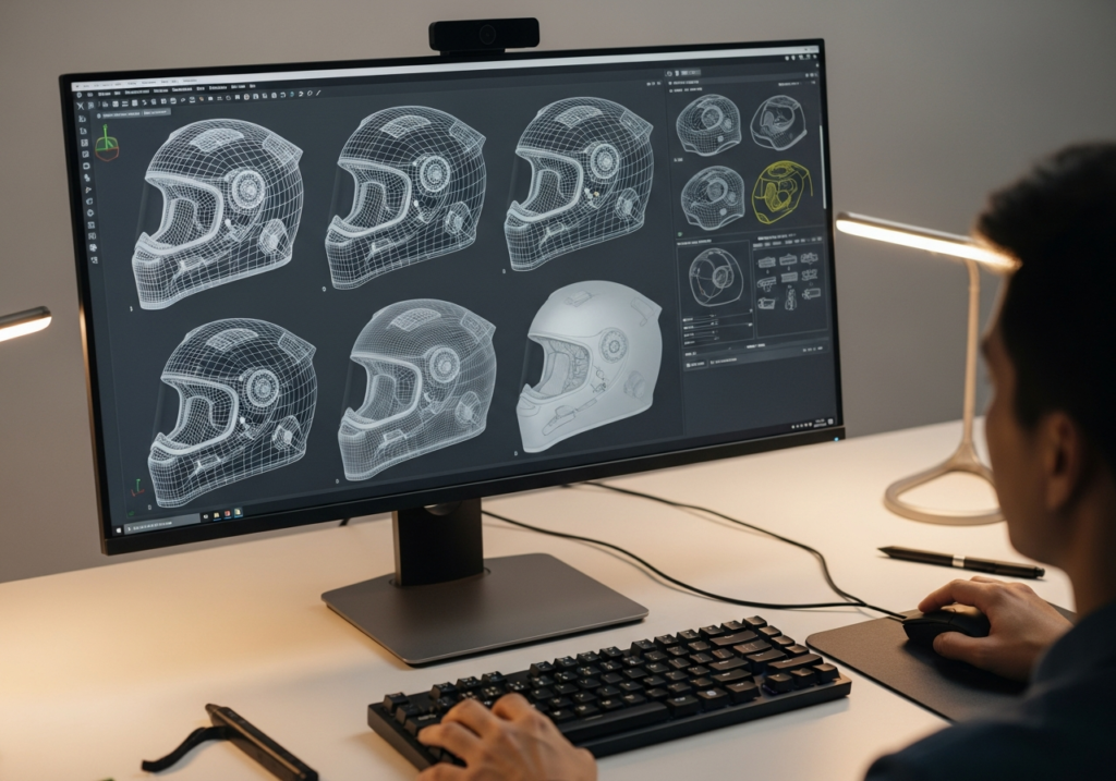 Every SafeHel helmet goes through a strict process—from 3D design to testing and final packaging.